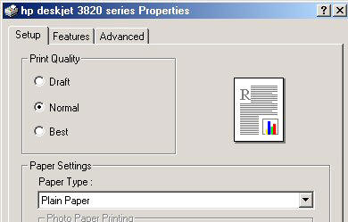 ![]() | Click on "Printing Preferences" to choose the type of paper you will be using as in the next picture.